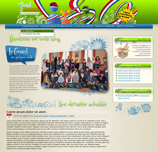 - Création d'un blog pour le Conseil Municipal des Enfants tournant sous Wordpress