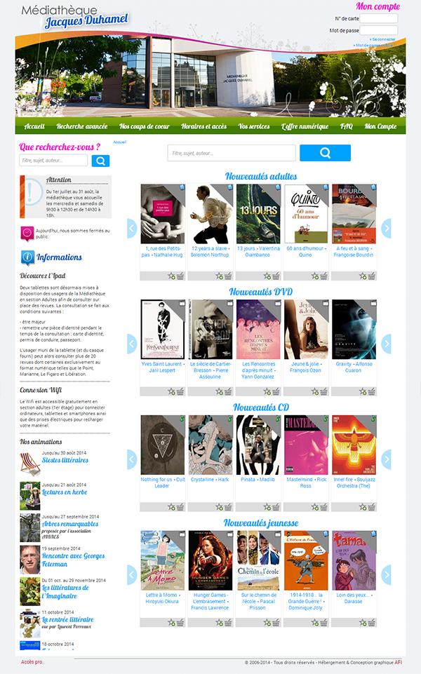 - Personnalisation des sites de la médiathèque et du portail Famille selon les contraintes fixées par nos prestataires de logiciels métiers qui fournissent les plateformes web