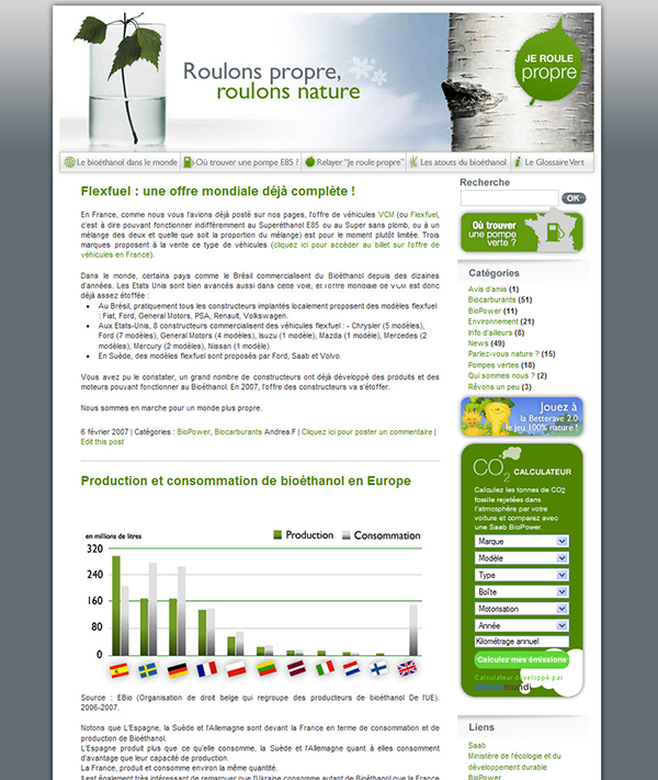 - Animation graphique du blog Roulonspropre-roulonsnature.com et qui proposait des actualités sur le thème des biocarburants